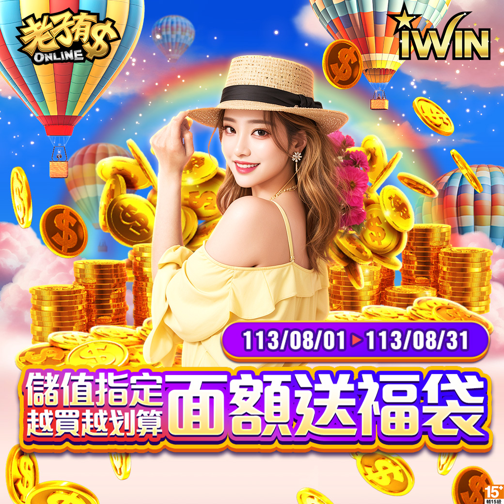 《老子有錢》8/1~8/31 iWIN儲值加碼贈福袋