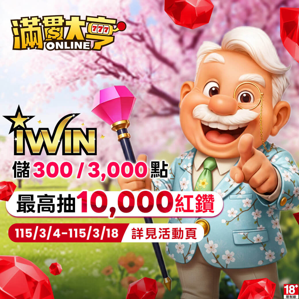 《滿貫大亨》3/4~3/18 儲值iWIN指定面額,即可獲得加贈禮包。