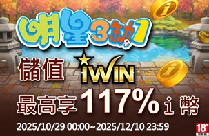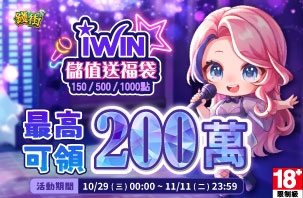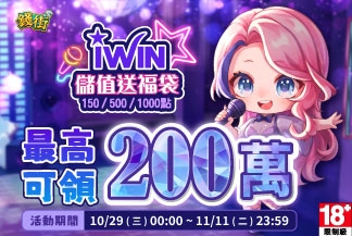 iWIN儲值指定面額送超值福袋~最高可得200萬! 【活動時間】2025/10/29(三)00:00 ~ 2025/11...