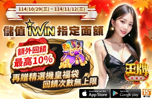 《王牌俱樂部》10/29~11/12 儲值iWIN指定面額加贈【精選機皇福袋】!