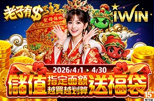 《老子有錢》4/1~4/30 iWIN儲值加碼贈福袋