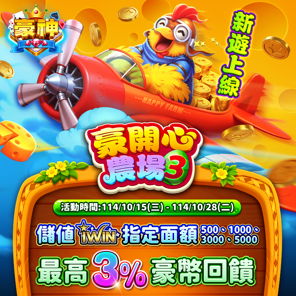 活動期間,透過 iWIN 購買指定面額 500 / 1,000 / 3,000 / 5,000 點,並成功儲值至【豪神娛樂城】遊戲帳號內,最高可享 3% 豪幣回饋!