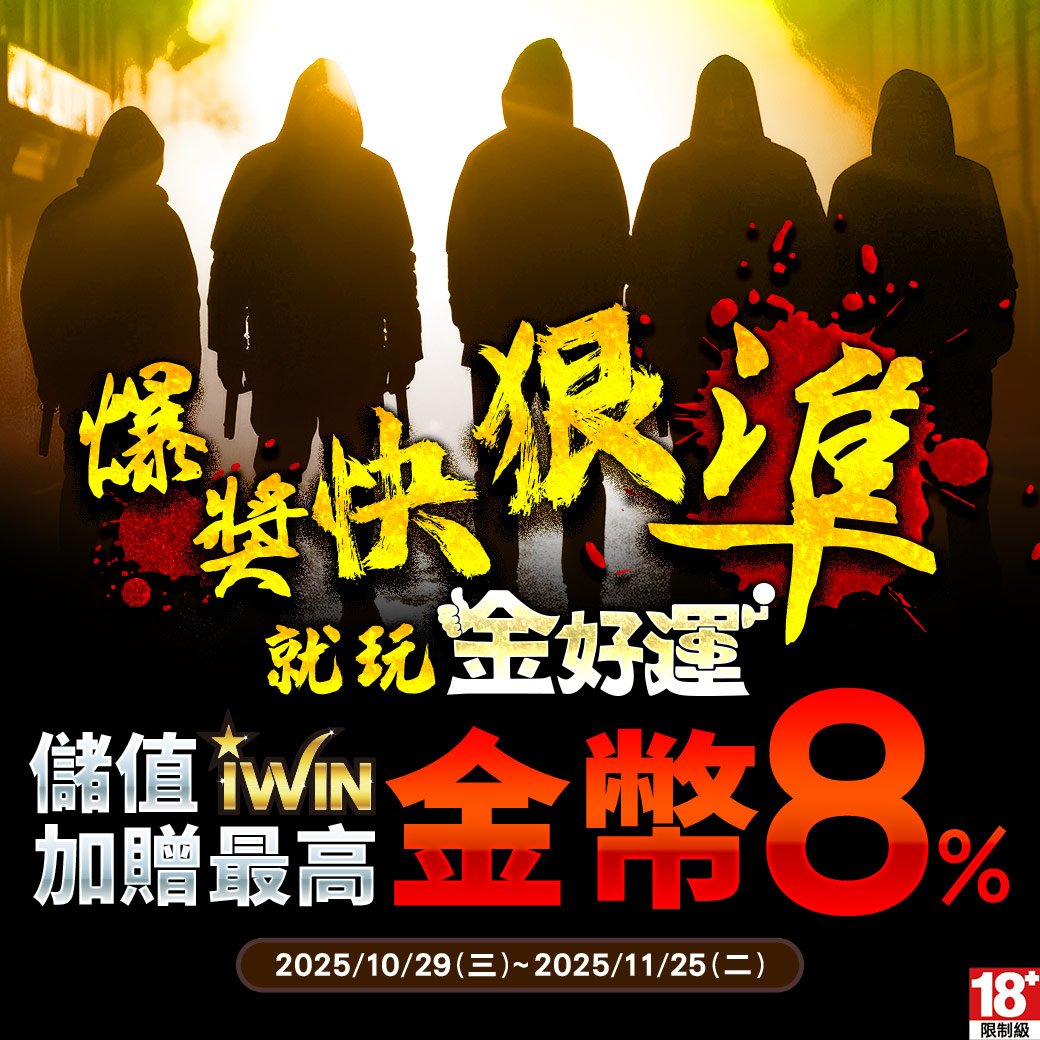 《金好運》10/29~11/25 儲值iWIN回饋最高8%金幣!