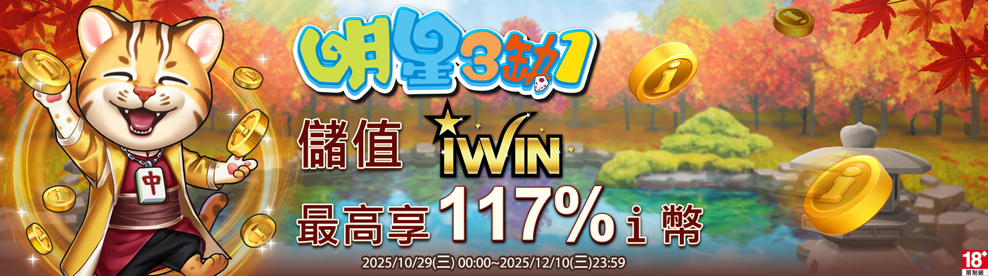 《明星3缺1》10/29~12/10 儲值最高拿115%遊戲幣!