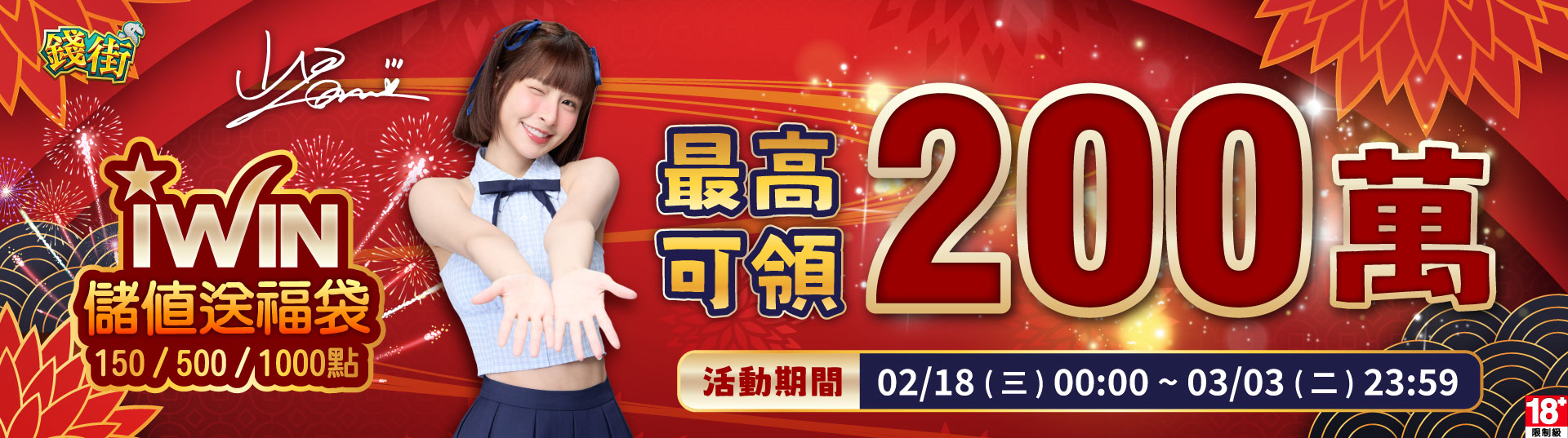 【活動內容】活動期間內,使用iWIN儲值150、500、1000元至《錢街》遊戲內即可獲得超值福袋乙只,最高可獲200萬c幣唷!
